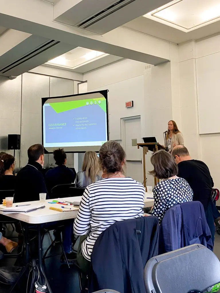 « Il y a plusieurs interventions et activités qui impliquent l’alimentation dans les écoles primaires et secondaires, selon Anne-Marie Boulais, diététiste au Centre de services scolaire Marguerite-Bourgeoys. Le système alimentaire scolaire a besoin d’un lieu commun pour partager les bonnes pratiques et développer des outils ».