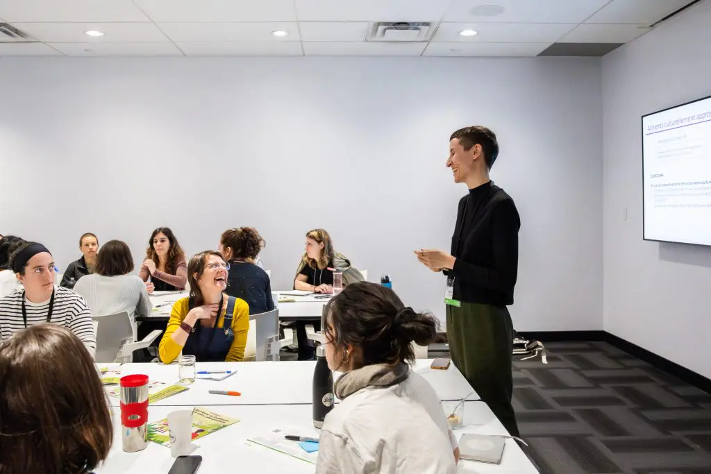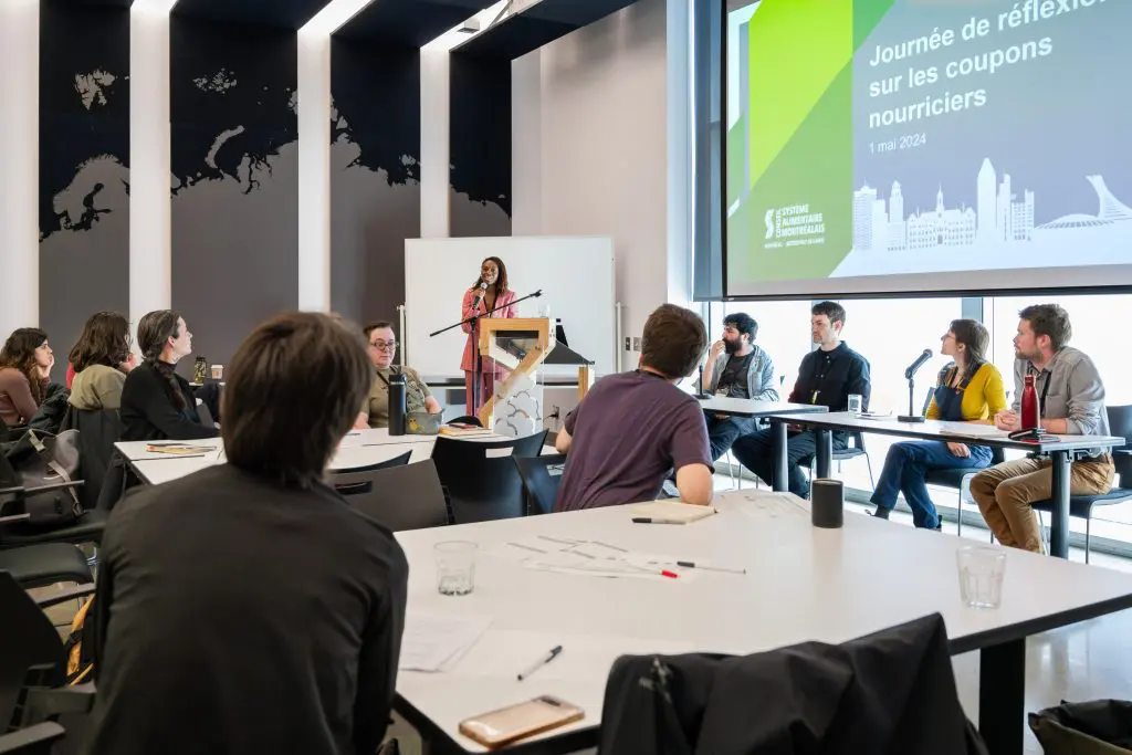 Le 1er mai 2024, 45 personnes se sont réunies à la Maison du développement durable à Montréal, Québec pour passer une journée de réflexion sur les programmes de coupons nourriciers au Québec. Cette journée était un suivi de la conversation démarrée en 2022, alors que plusieurs projets de coupons étaient en train de voir le jour à travers le Québec.